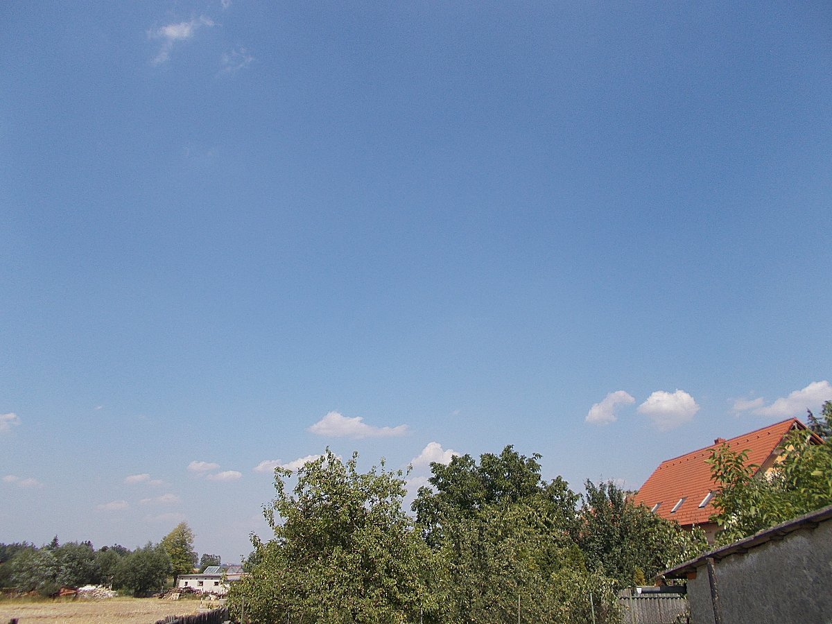 Tlak 1019 hPa, vlhkost 38% vítr západní 13,7 km/h. První objev na obloze po dlouhé době a vdáli je slyšet i hrom. Ale zda to dojde sem, nebo bude pohroma, to se uvidí...