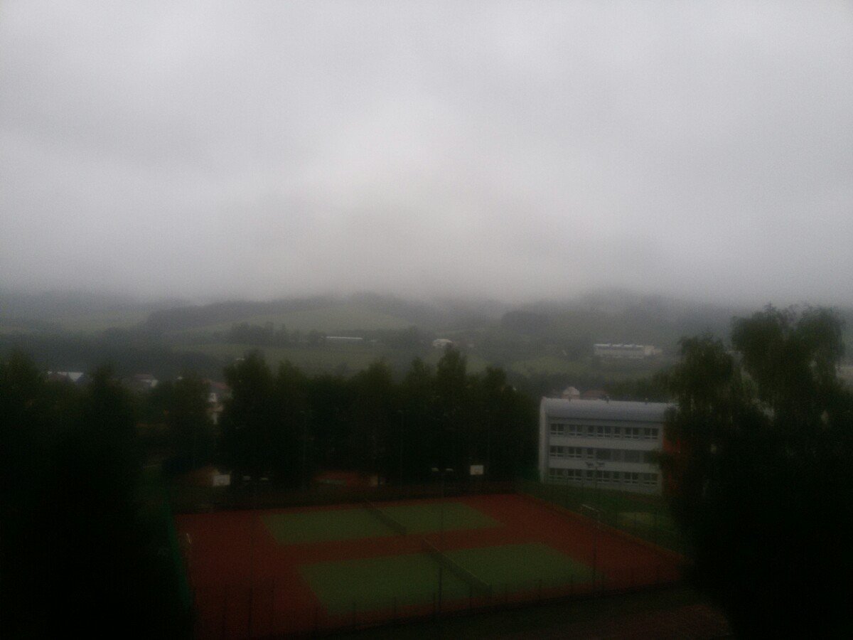 Přestalo pršet,oblačnost se protrhává,tlak 1016hPa,úhrn srážek za 24hodin-39mm