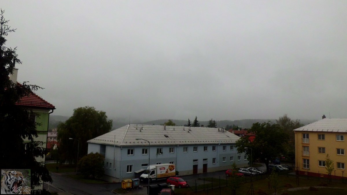 Krušné hory v oparu.