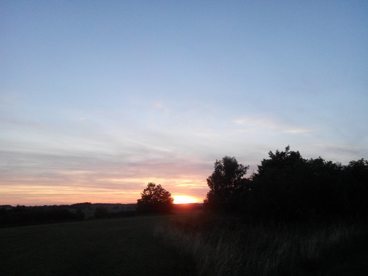 Klidno,tlak 1022hPa,Slunce zapadá,na opačné straně vychází Měsíc