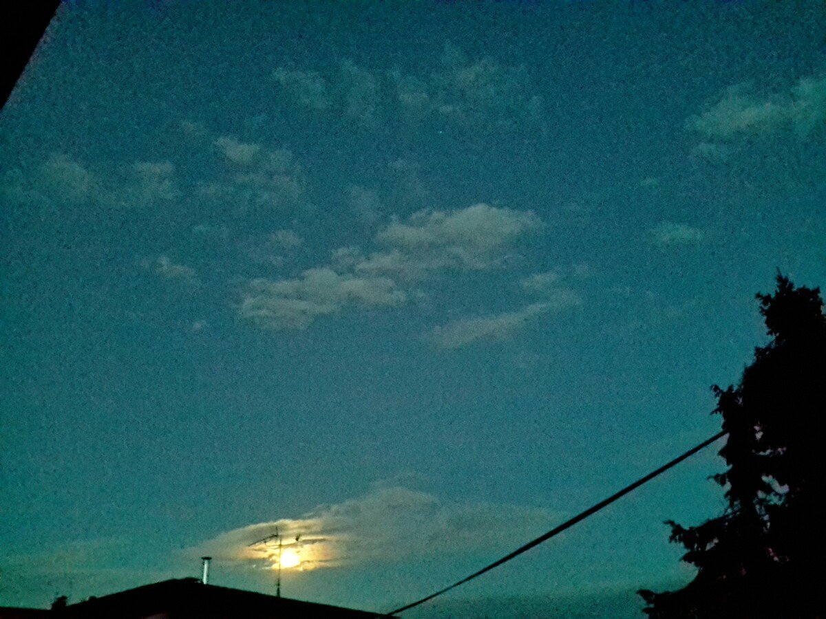 obloha se zatáhla,ale je příjemné teplo posedět venku.Takto vykukuje měsíc