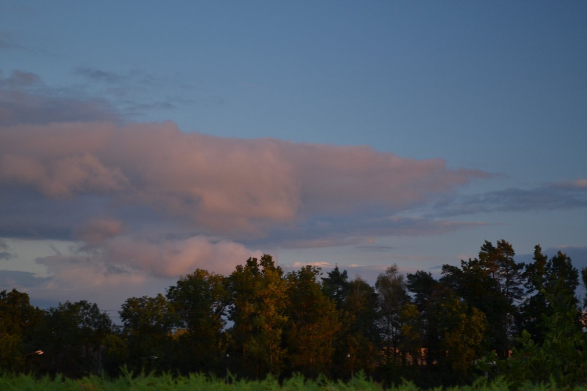 Prší,klidno,tlak 1022hPa,vlhkost 61%,západ Slunce v dešťi.