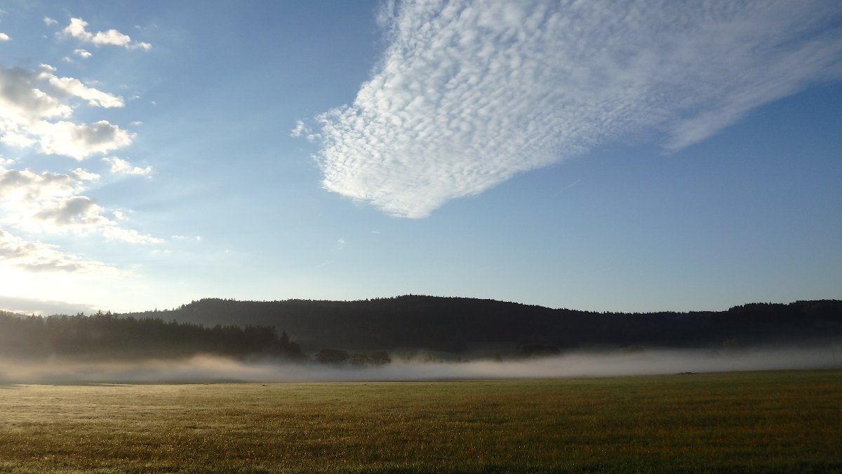 vítr do 2 Bft, nízká dohlednost, v údolí Vltavy mlha