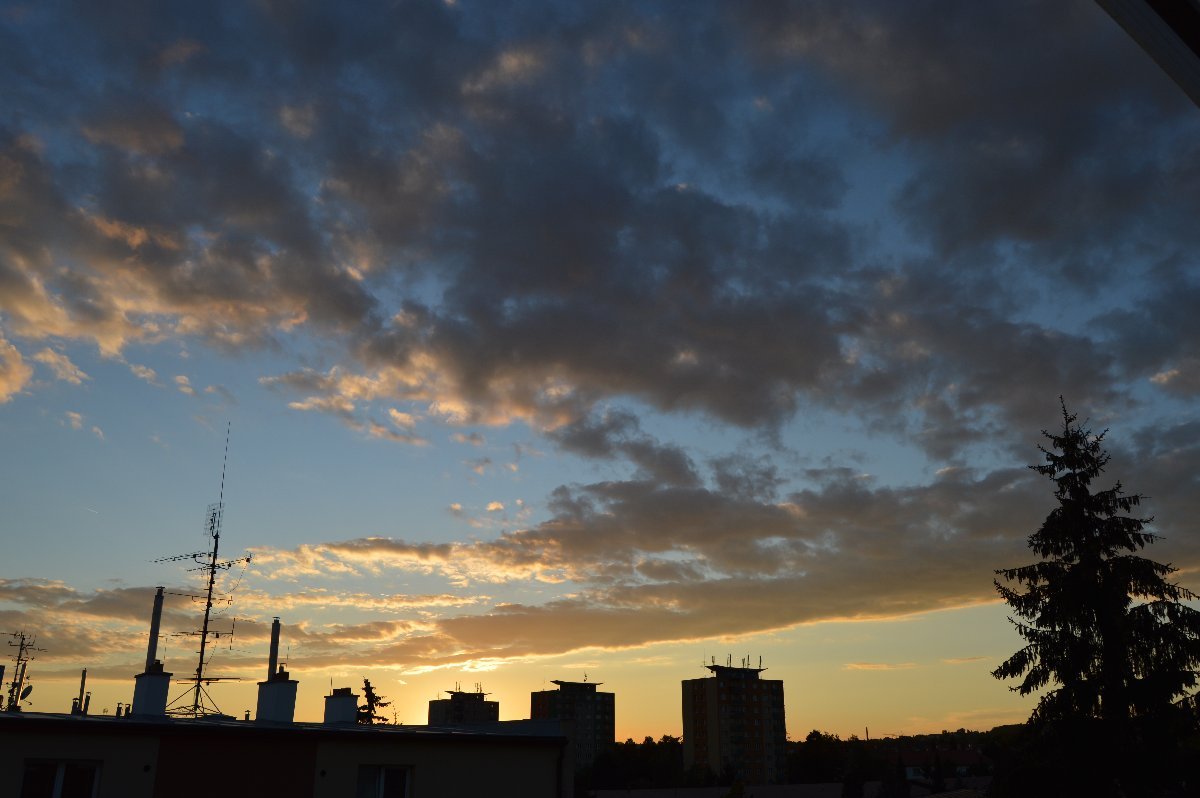 Vánek,tlak 1020hPa,Slunce zapadá..