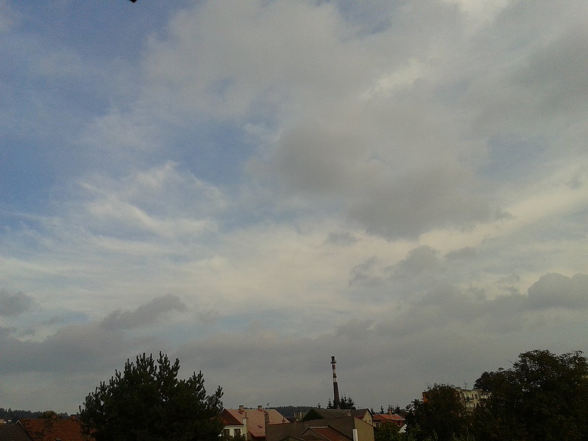 Oblačno az skorozatazeno vysoka a trochu středni oblačnost. Trochu pofukuje,a od JZ dale přibiva oblačnost jinak dnes docéla teplo. :-)