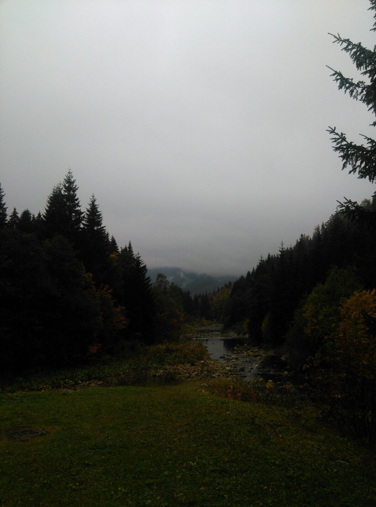Slabě až mírně mrholí, tlak 1020,3 hPa, vlhkost 96 %, slabý SZ vítr. Srážky za 24 hodin 3,1 mm.