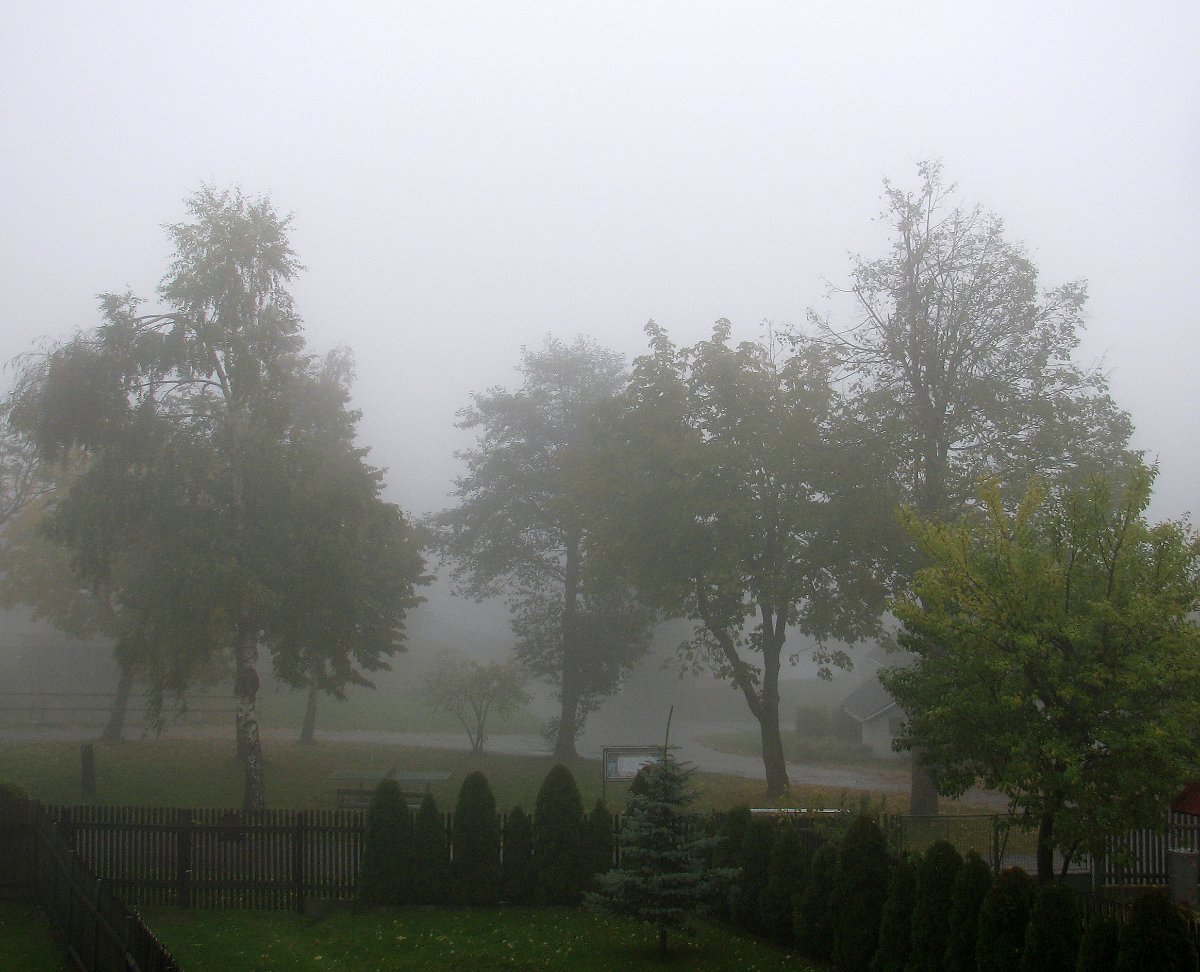Po nočním mrholení s mlhou nyní déšť trvalý vydatnější,mlha se stále drží ve vyšších partiích,tlak 1027,2 hPa,vlhkost 85% a bez větru...