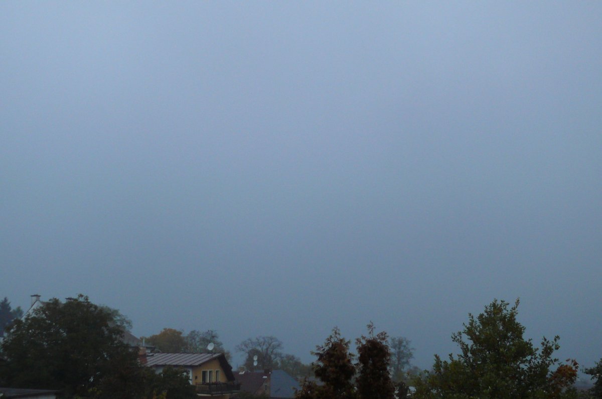 dopoledne zataženo a beze srážek, po 14:00h začalo celkem silně pršet a je mlhavo