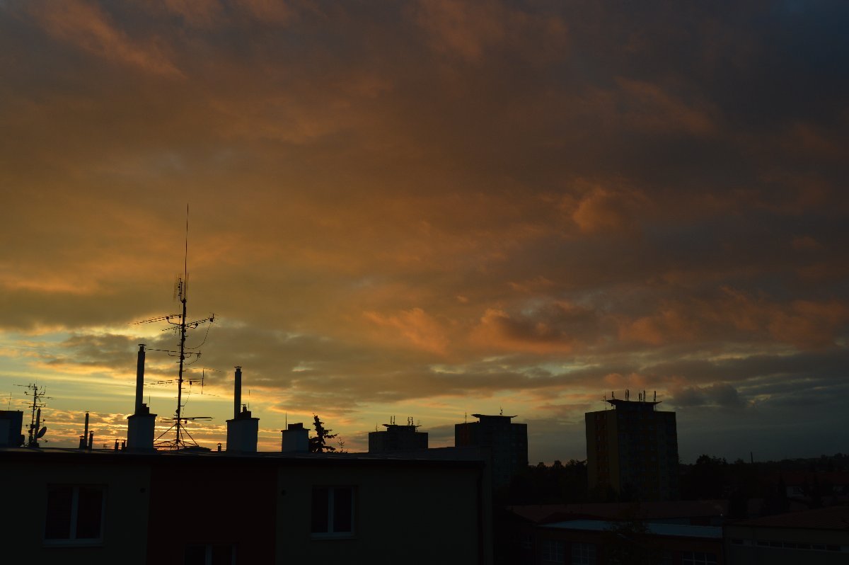 Klidno,tlak 1018hPa,vlhkost 77%,dnešní západ Slunce