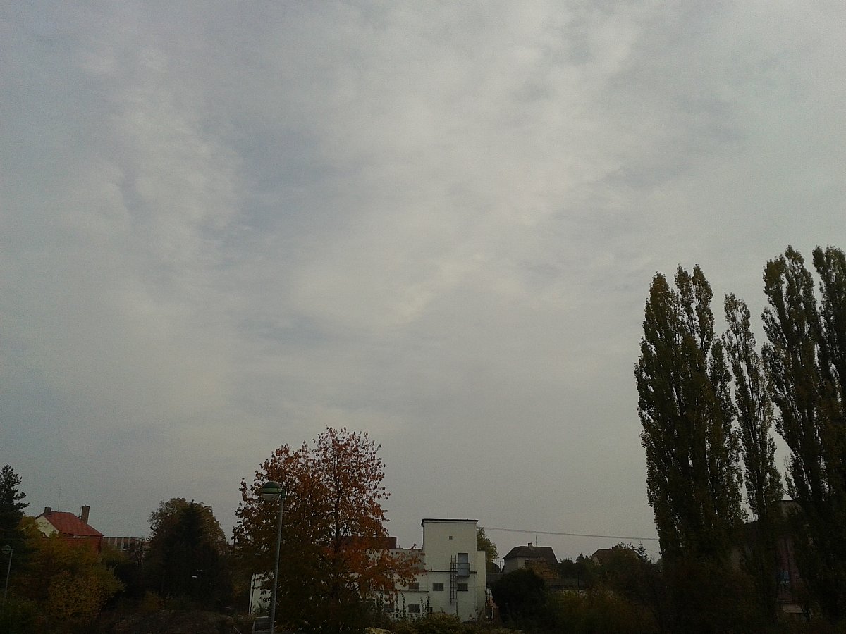 ...klesající mlha začernila asfalt, inverze a slabý trvalý severní vánek co lísteček ze stromu nezklátí...