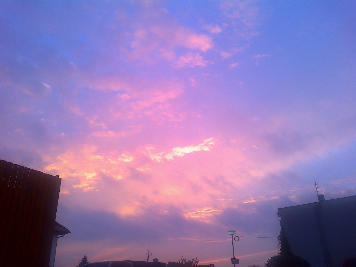 Klidno,tlak 1023hPa,vlhkost 85%,obloha před západem Slunce.