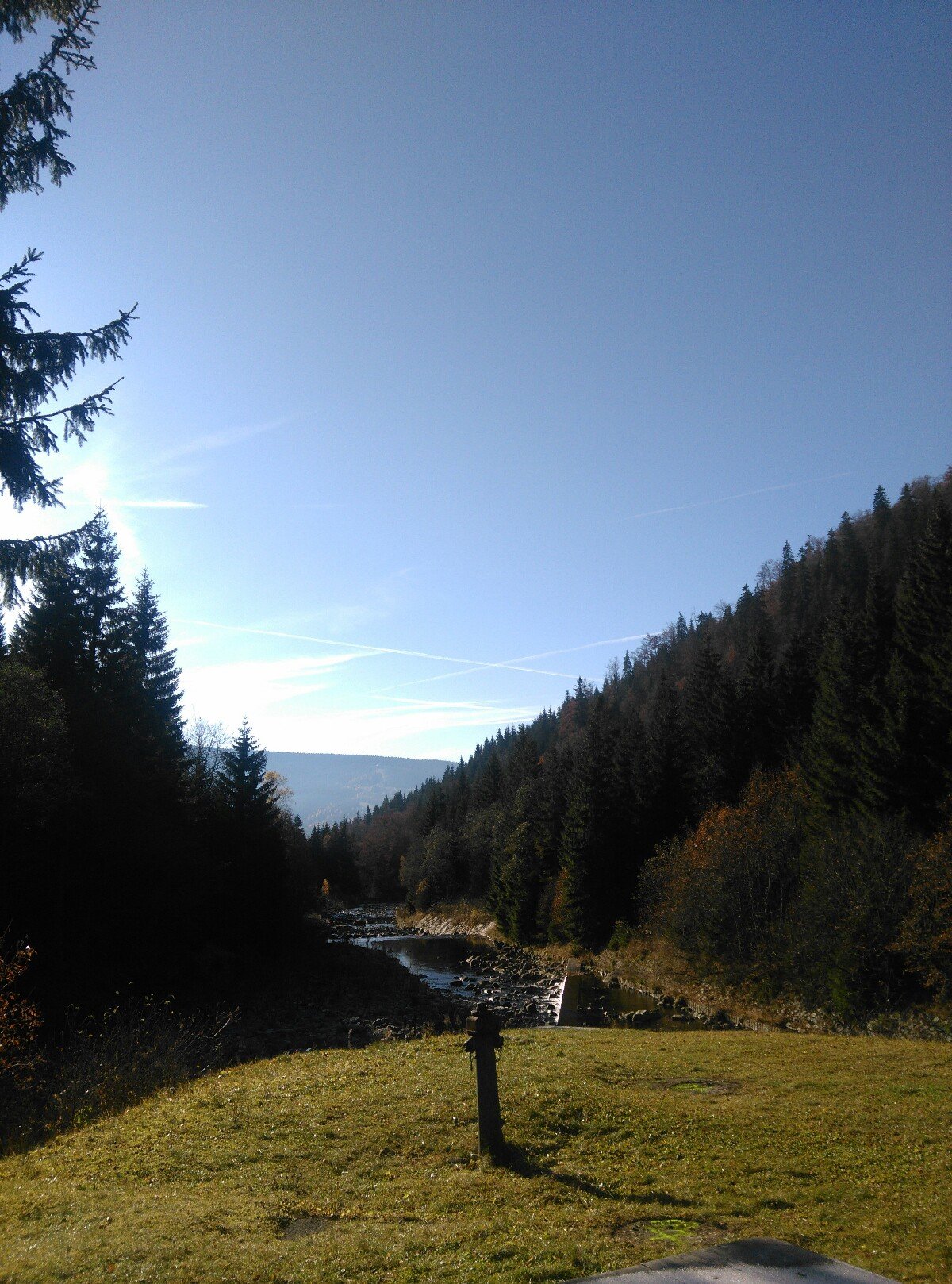Slunko svítí. Mlha všude