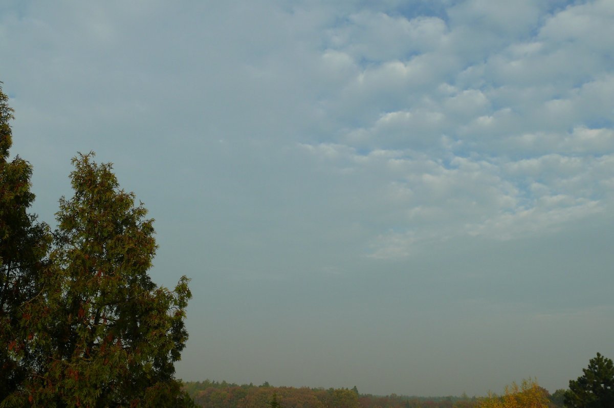 Je polojasno a vitr fouka slaby. Je kourmo.