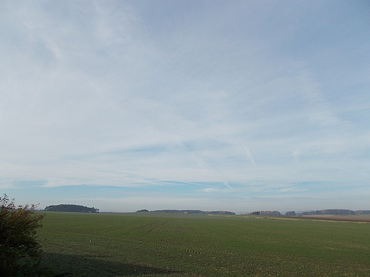 Ještě je polojasno, ale zvětšuje se oblačnost, tlak 1023 hPa, vlhkost 25%, vítr JV 0,8 m/s.