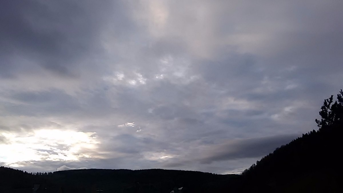 Tlak 1026 hPa, vlhkost 75% vítr jihozápadní 4,8 km/h. Něco se sem pokouší, ale hřeben to sem zatím nepustil :-)