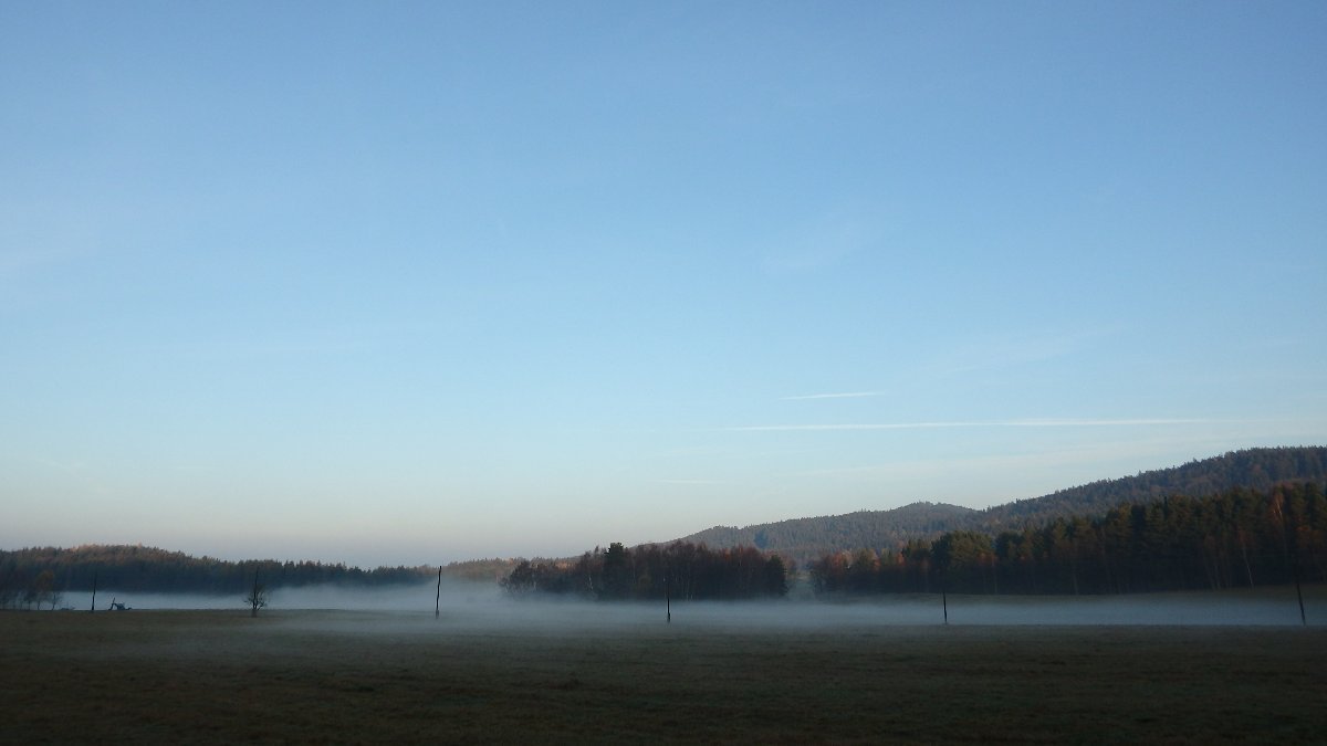 Dnes trochu chladněji, noc jasná, mírný Z vítr. Tlak 1021 hPa, vlhkost 94%, vítr Z 0,2 m/s.