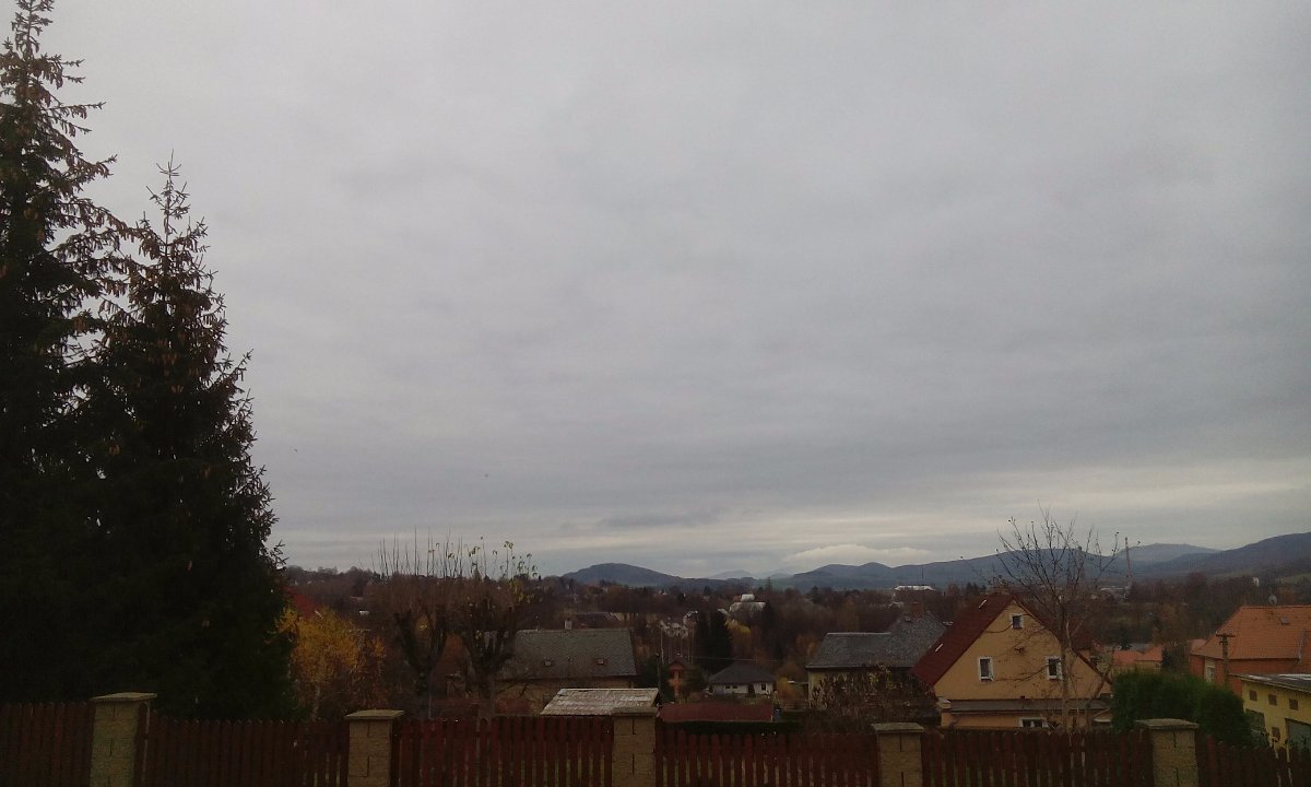 Oblačnost 100%, zákl.oblačnosti 410,27m.n.m., tlak 1025,9hPa, dohlednost 1km, rel.vlhkost 99,2%, abs.vlhkost 9,39g/m3, SV větřík 36° 1,8m/s(2 Bft), poc.teplota 8,88°C, ochl.větrem 9,48°C, tepl.ros.bodu 9,98°C, tepl.mraků 6,06°C, délka dne u nás = 9hod.16min.42vt.