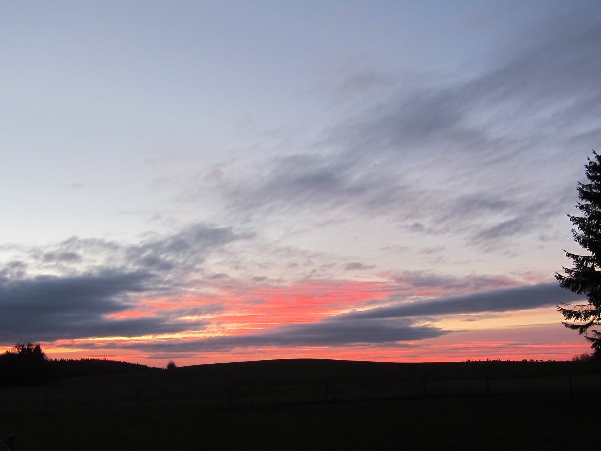 ...měsíček na vrbě, utichlý vítr, pouze vysoká oblačnost 2/10 a letadlí čmáránky...