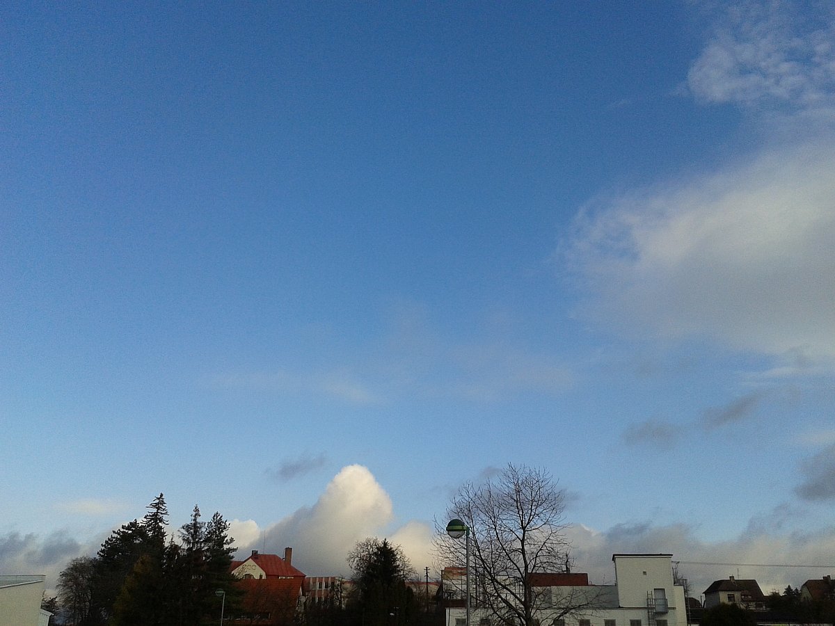 Svítilo krásně sluníčko a během chvilky se přihnala pořádná, jen chvilková sněhová přeháňka. Sníh jako polystyrenové kuličky...