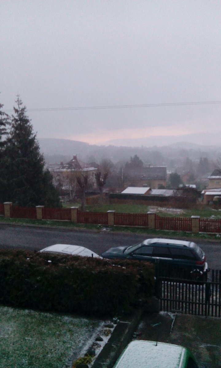 oblačno, místy slabý poprašek, teplota pomalu klesá