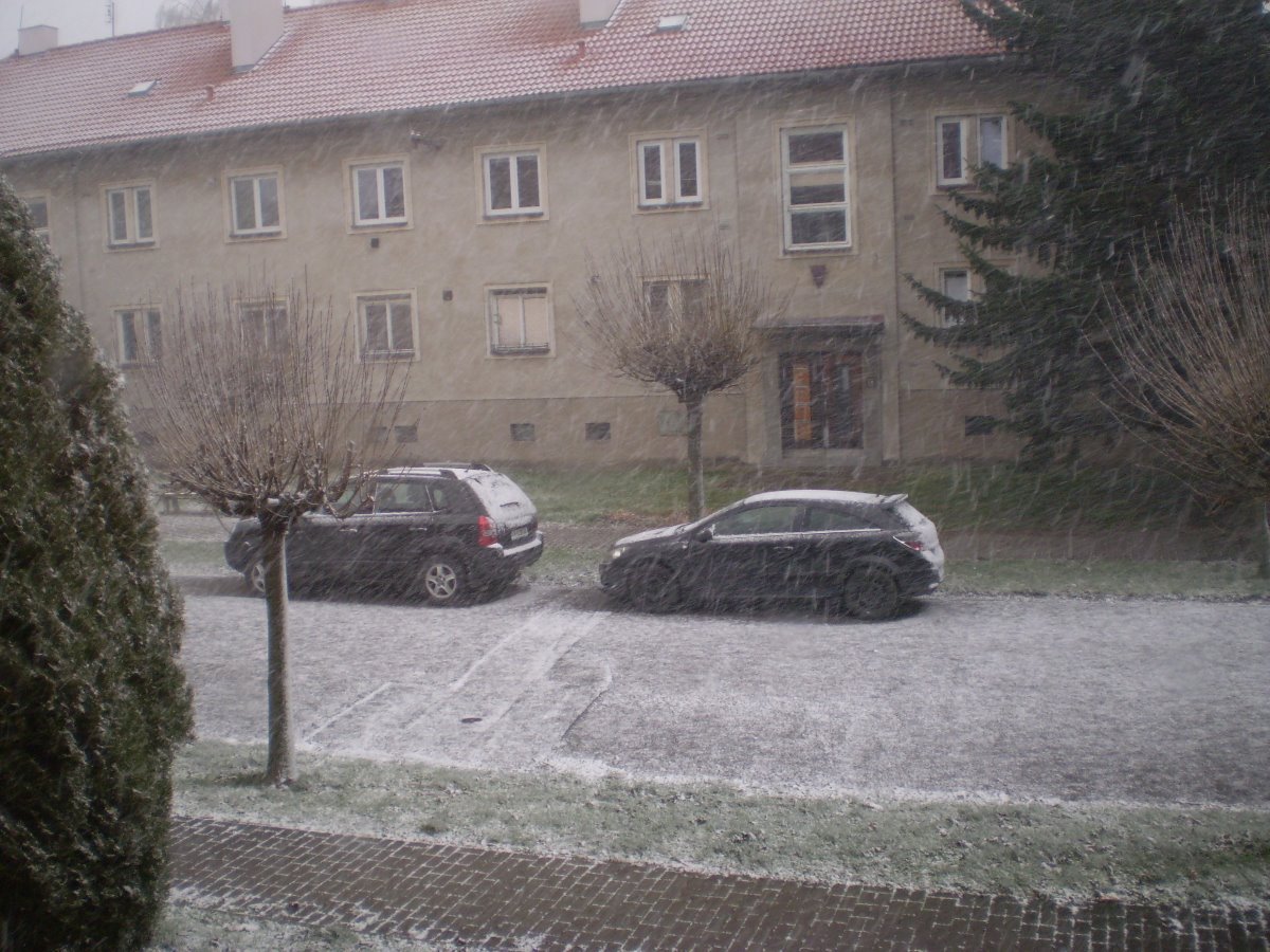 Dnešní druhá větší sněhová přeháňka,dnešní ranní min.teplota -6,5°C,tlak 1025,9 hPa,vlhkost 73%,mírný vítr...