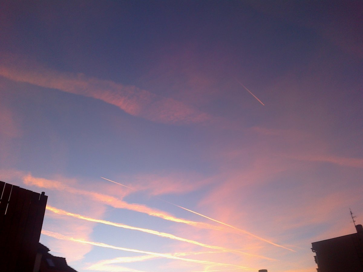 Dnes sluničko, teplota 8°C, teď červená obloha a teplota klesá.