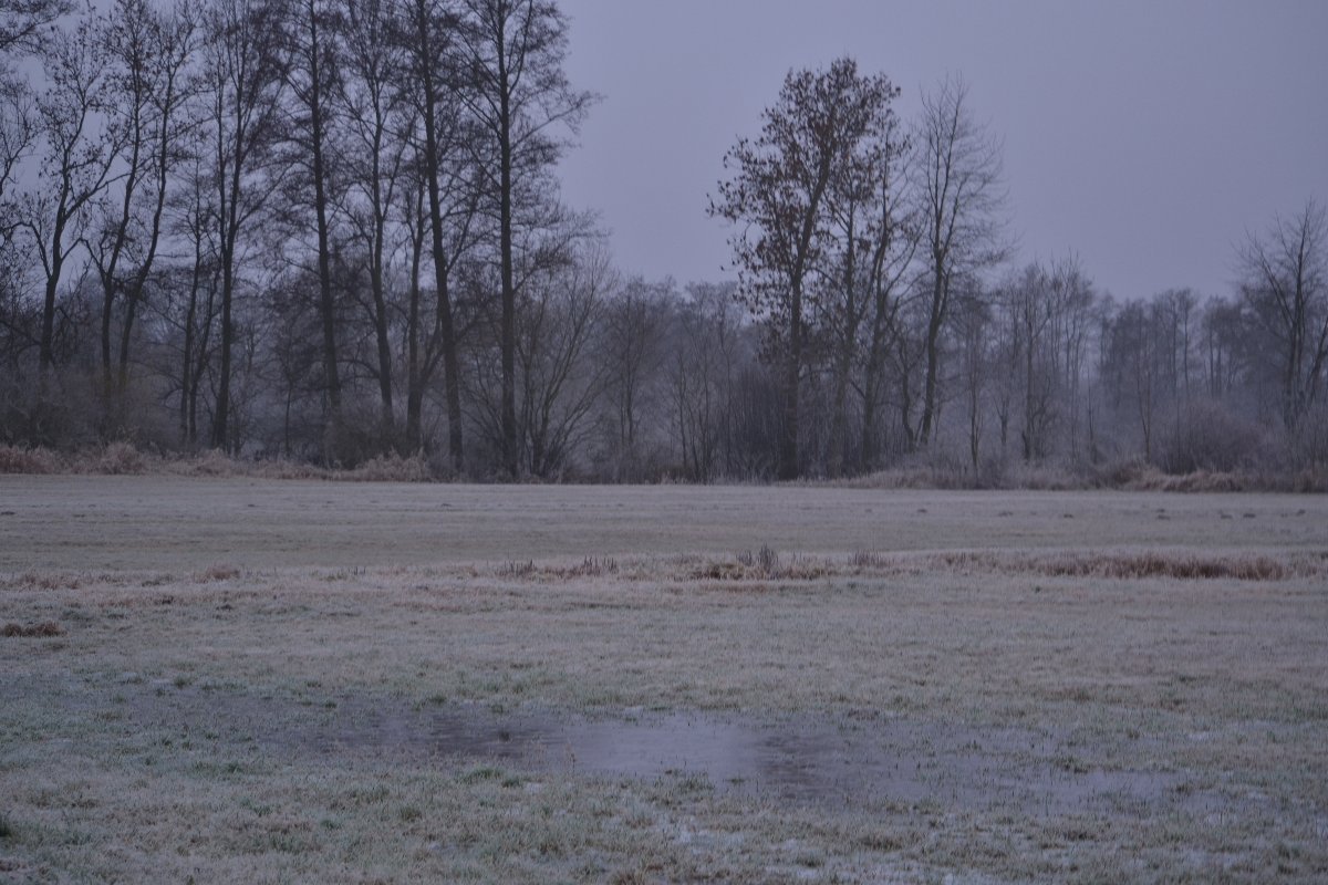...po celou noční pouť viditelný měsíček se začíná schovávat do houstnoucích mléčných peřin ranní mlhy, večer ještě teplo, po půlnoci námraza a přízemní mrazík, bezvětří...
