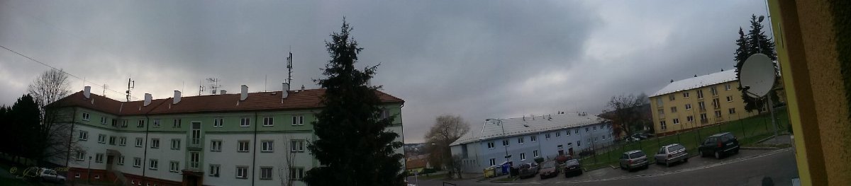 ...ráno a dopoledne ještě namrzající na autech a trávníkách, teď už jenom "mokrá" mlha... bezvětří...