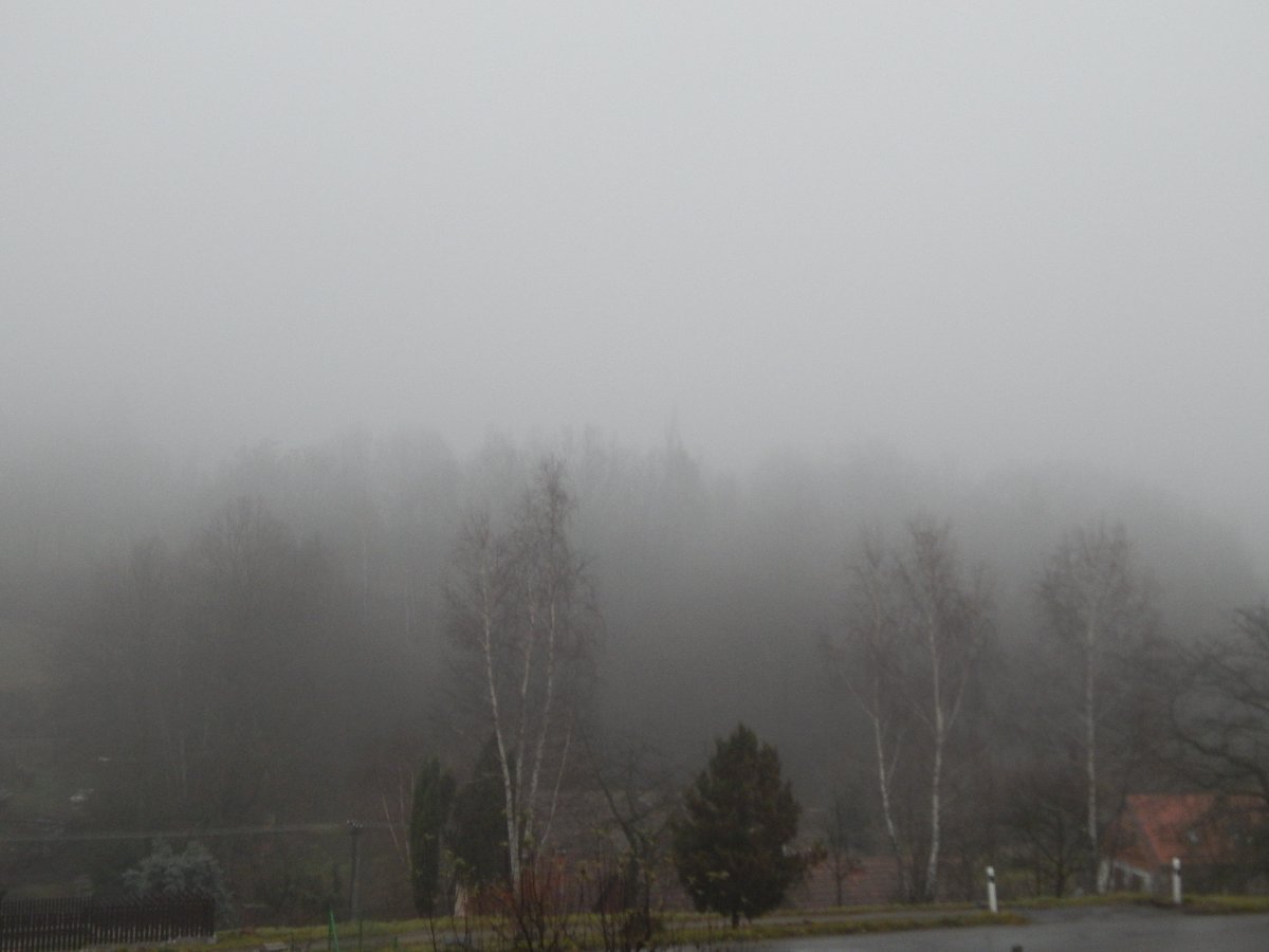 Mrholí, oblačnost 100%, zákl.oblačnosti 489,82m.n.m., tlak 1034,1hPa, dohlednost 4km, rel.vlhkost 96,7%, abs.vlhkost 5,19g/m3, ZJZ větřík 245° 2,0m/s(2 Bft), poc.teplota -1,68°C, ochl.větrem 0,84°C, tepl.ros.bodu 1,03°C, tepl.mraků -3,32°C.