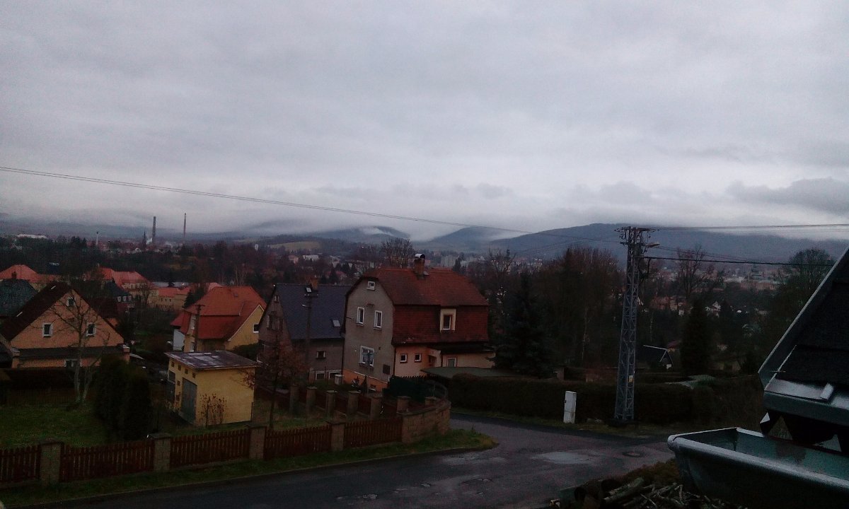 Prší(0,4mm/hod.), oblačnost 100%, zákl.oblačnosti 576,18m.n.m., tlak 1030,9hPa, dohlednost 10km, rel.vlhkost 94,0%, abs.vlhkost 4,55g/m3, slabý J vítr 182° 5,0m/s(3 Bft), poc.teplota -5,55°C, ochl.větrem -4,92°C, tepl.ros.bodu -0,85°C, tepl.mraků -5,67°C.