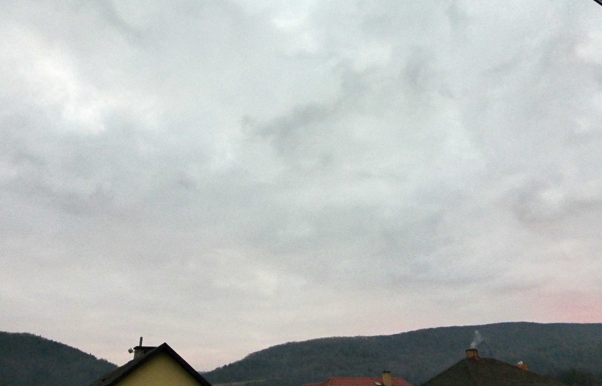 Polojasno,nad východem zataženo , bezvětří,tlak 1029hPa