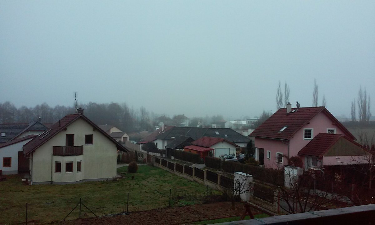 Oblačnost 92,8%, zákl.oblačnosti 562,55m.n.m., tlak 1030,9hPa, dohlednost 9km, rel.vlhkost 94,5%, abs.vlhkost 5,25g/m3, slabý JJV vítr 160° 3,8m/s(3 Bft), poc.teplota -2,37°C, ochl.větrem -1,69°C, tepl.ros.bodu 1,25°C, tepl.mraků -3,54°C, ozon 241D.U.(-25%,extrémně podprůměrný stav).