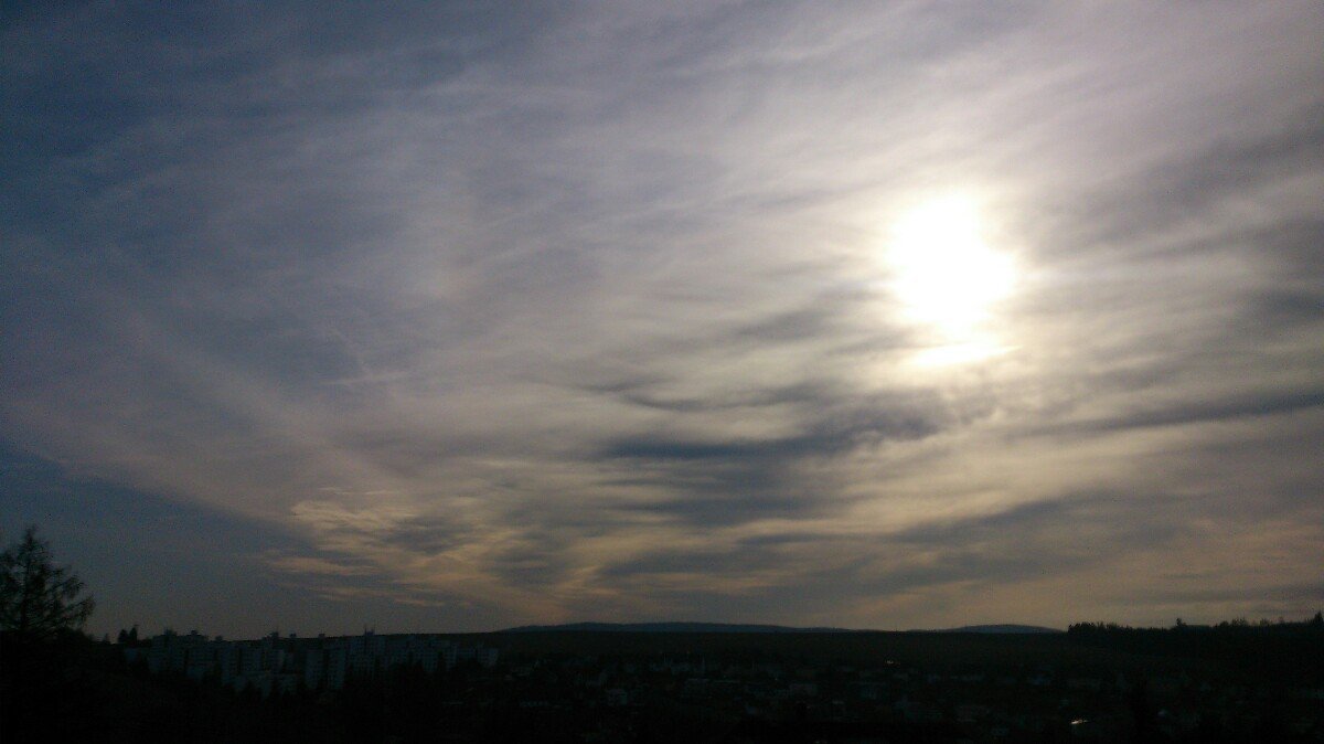 Oblačnost 26,3%, zákl.oblačnosti 2901,18m.n.m., tlak 1033,8hPa, dohlednost 40km, rel.vlhkost 42,3%, abs.vlhkost 1,83g/m3, mírný JJZ vítr 198° 6,1m/s(4 Bft), poc.teplota -9,01°C, ochl.větrem -7,53°C, tepl.ros.bodu -12,68°C, tepl.mraků -26,94°C.