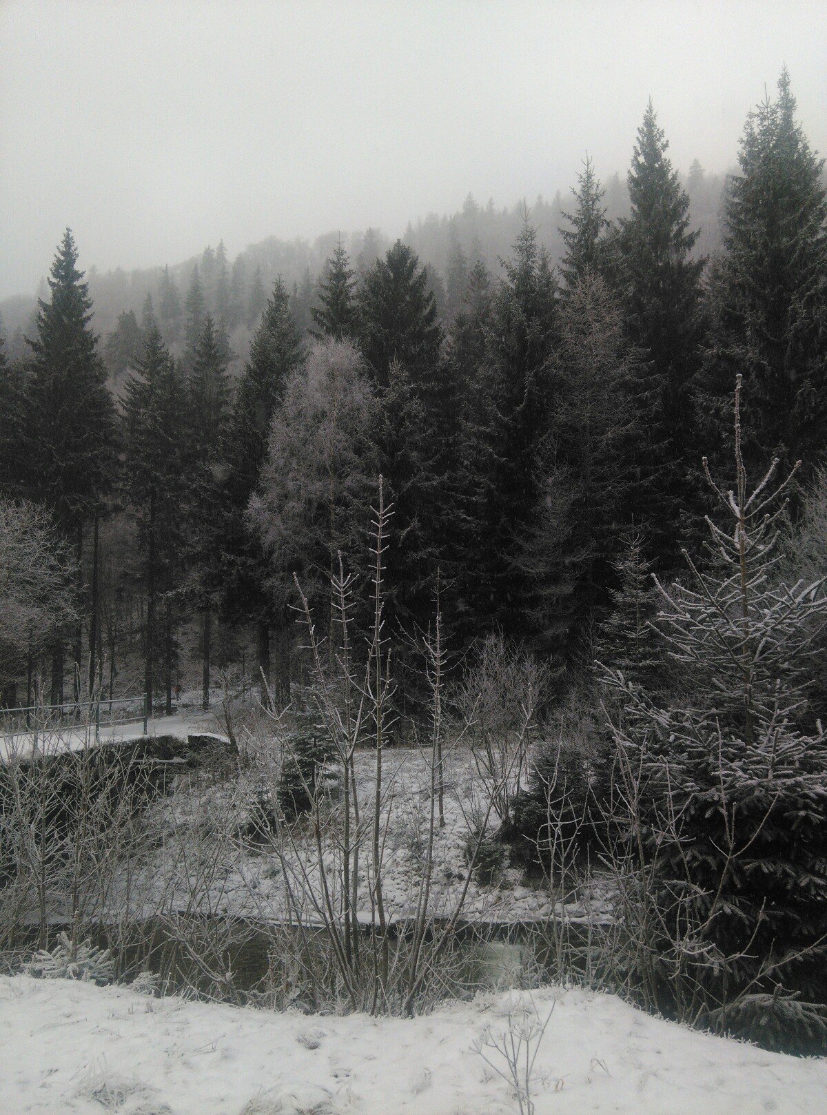 ...při zemi ještě slabý mrazík s potřebou doškrábat si svezlý sníh na předním skle auta, vane slabý jv, po celé obloze beztvaré šedivo...