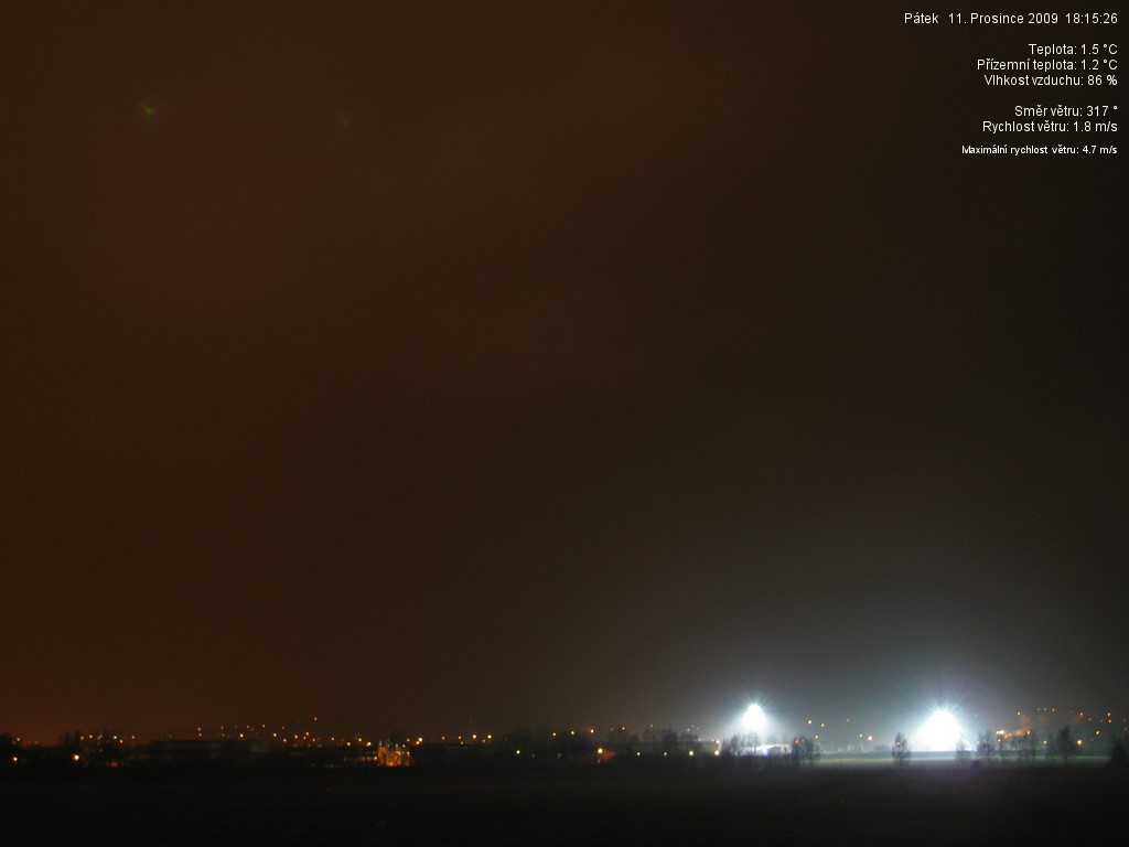 Zataženo,bez deště,80 % vlhkost,1.8 m/s......