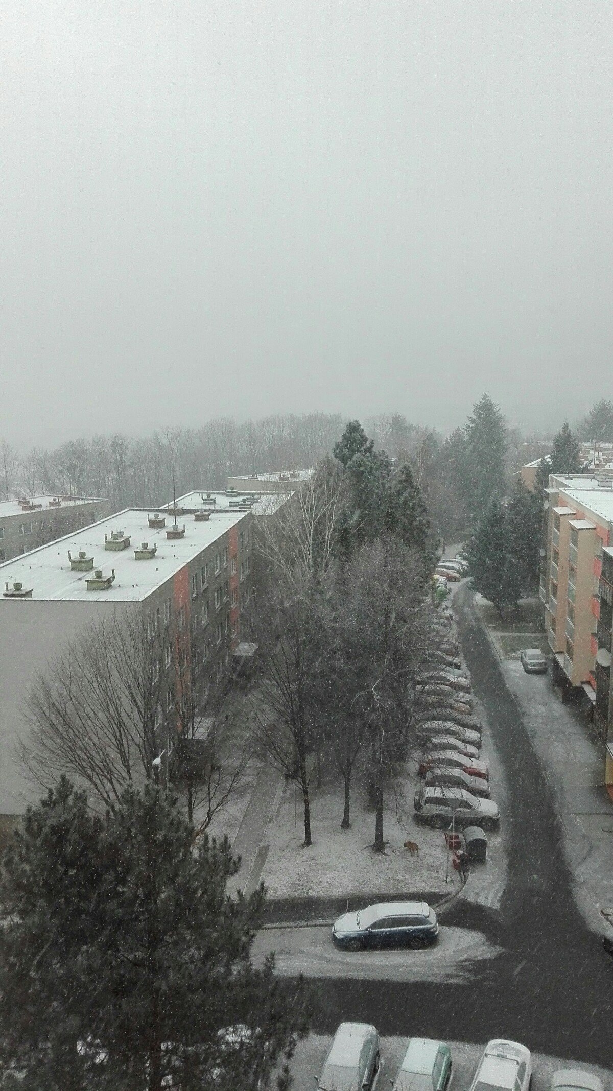 ...po včerejšku s celodenní teplotou mírně pod 0 se slibující zamračenou šedivou oblohou začalo sněžit až nyní cca před hodinou - drobně ale vytrvale - vane mírný jv....