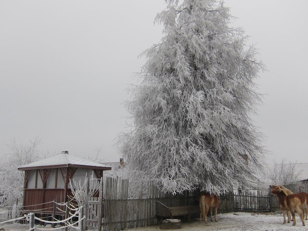 Námraza,slabě sněží a je mlhavo,fouká mírný vítr který je pěkně ledový