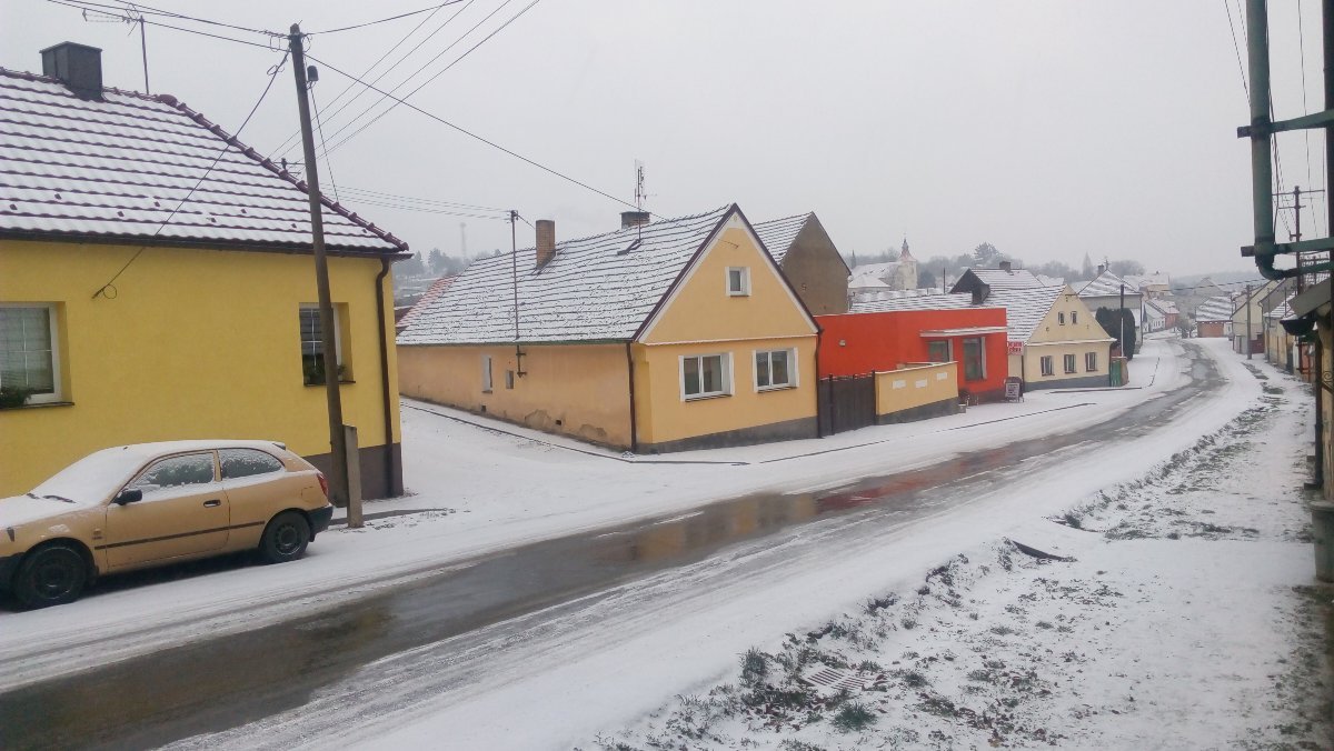 ...od sedmé občas padající prašan se snaží zakrýt zelené skvrny na trávnících a černé fleky na asfaltu, s trávníky se zatím moc nedaří - mírné, táhlé poryvy jv větříku, zcela zataženo...