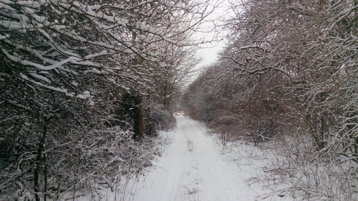 Cely den slabe snězeni a ledovy vitr. Zatim poprašek na zemi.