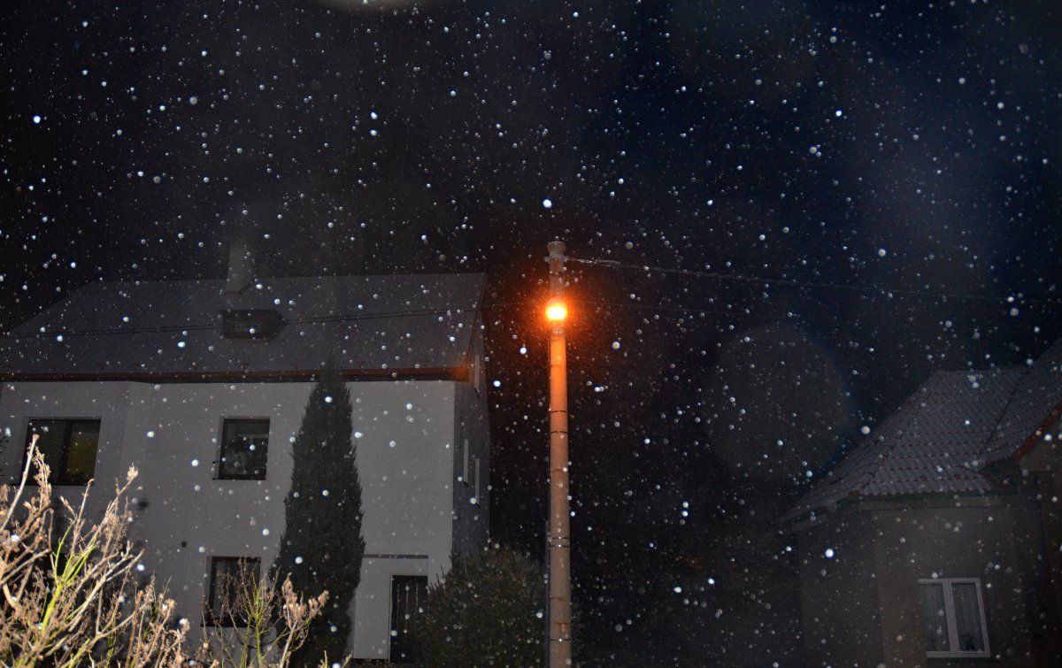 drobné vytrvalé sněžení chvílemi i intenzivní, slabý až mírný vítr vytváří místy malé sněhové jazyky