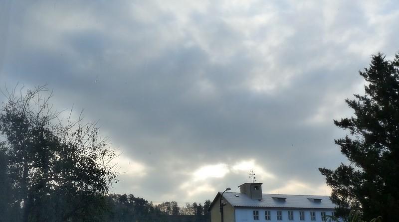 Tak barometr opět nezklamal. Ráno slabý déšť, teplota v 8:00 hod 6°C, vítr 1,5 m/s s různých směrů, tlak klesl na 1015 hPa,zataženo, relativní vlhkost 93%...