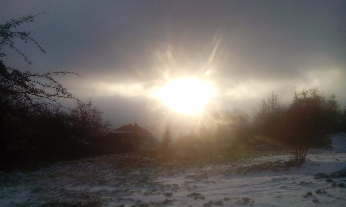 Je zatazeno nizkou oblacnosti a je bezvetri. Meli sme 0,5 st tedy slabou oblevu. Tet uz to vypada ze to klesne pod nulu a bude naledi.