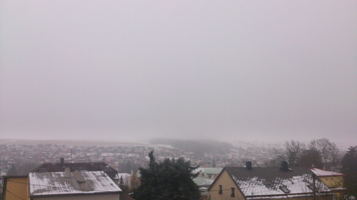 Celý den mlha a drobně sněží.