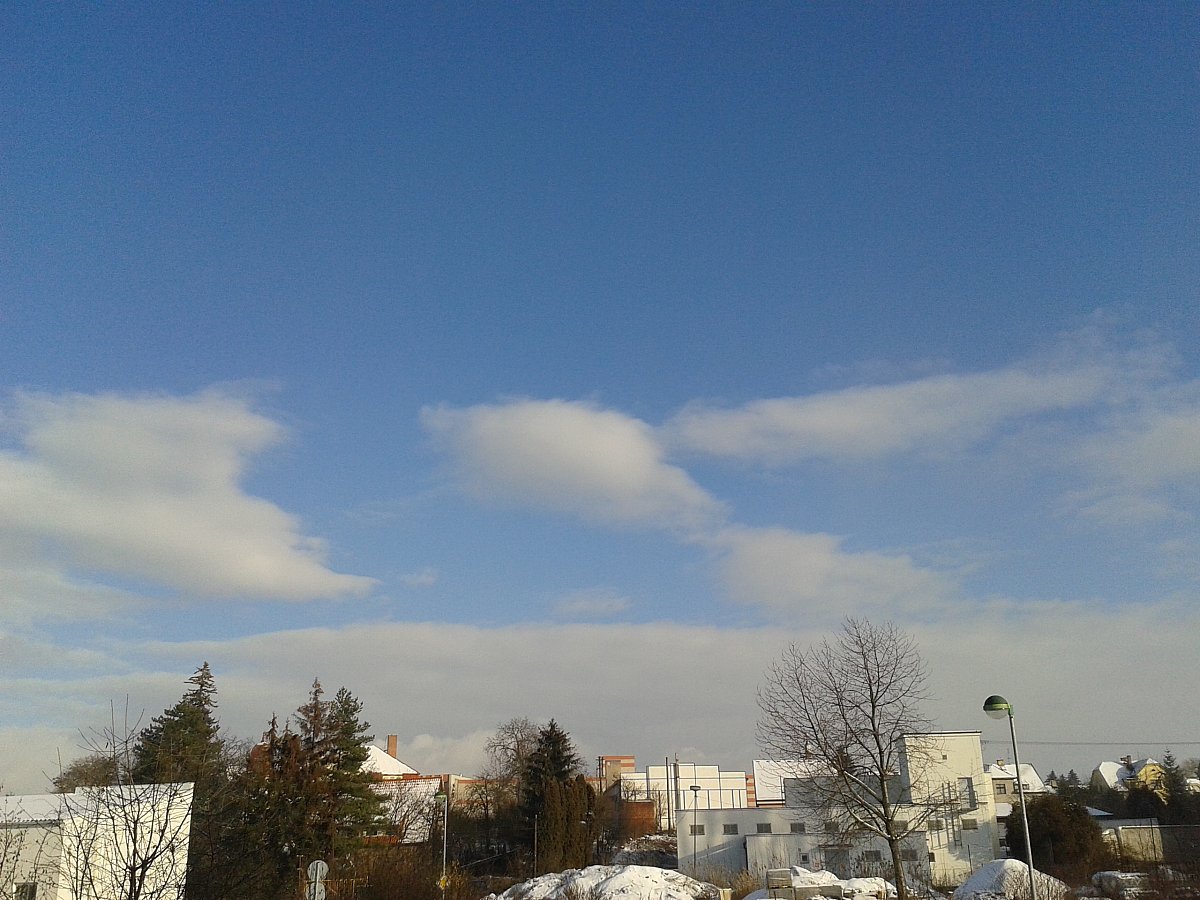 Spadlo pár vloček, fouká čerstvý vítr, tlak 998 hPa, vlhkost 90%.