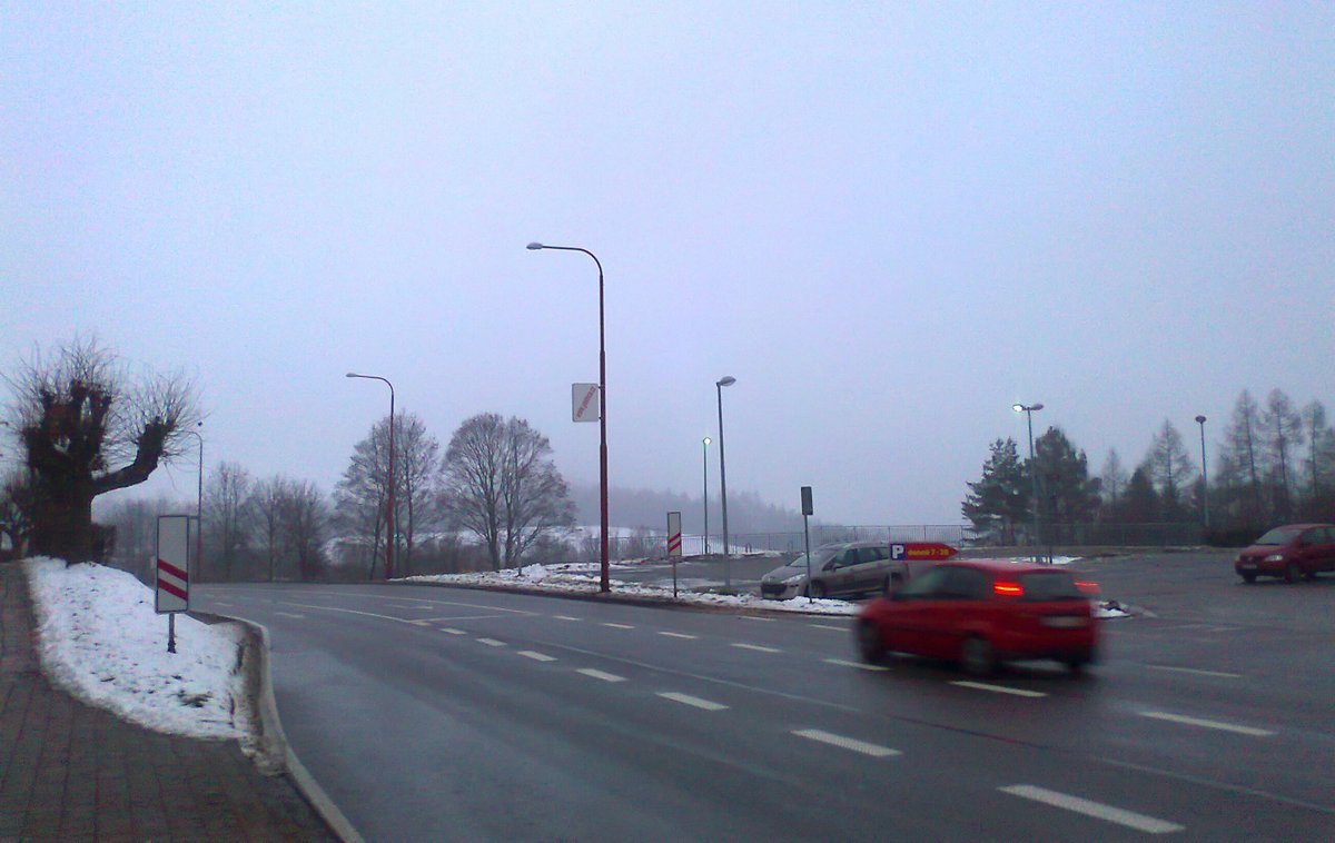 hustá mrznoucí mlha, do 3 cm zmrzlého sněhu