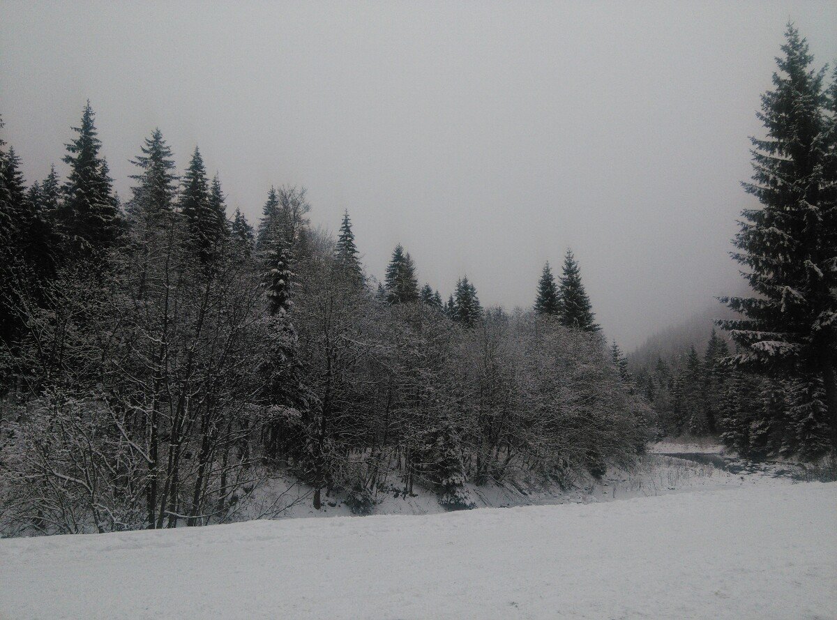 Je zatazeno slabe mrholi a vitr je slaby. Obleva trvala pres celou noc a snih pomalu taje.