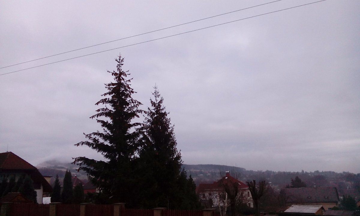 Oblačnost 100%, zákl.oblačnosti 489,82m.n.m., tlak 1001,8hPa, dohlednost 8km, rel.vlhkost 96,7%, abs.vlhkost 5,12g/m3, JJZ vánek 194° 1,4m/s(1 Bft), poc.teplota -1,48°C, ochl.větrem -0,12°C, tepl.ros.bodu 0,83°C, tepl.mraků -3,52°C, délka dne u nás = 8hod.31min.42vt.