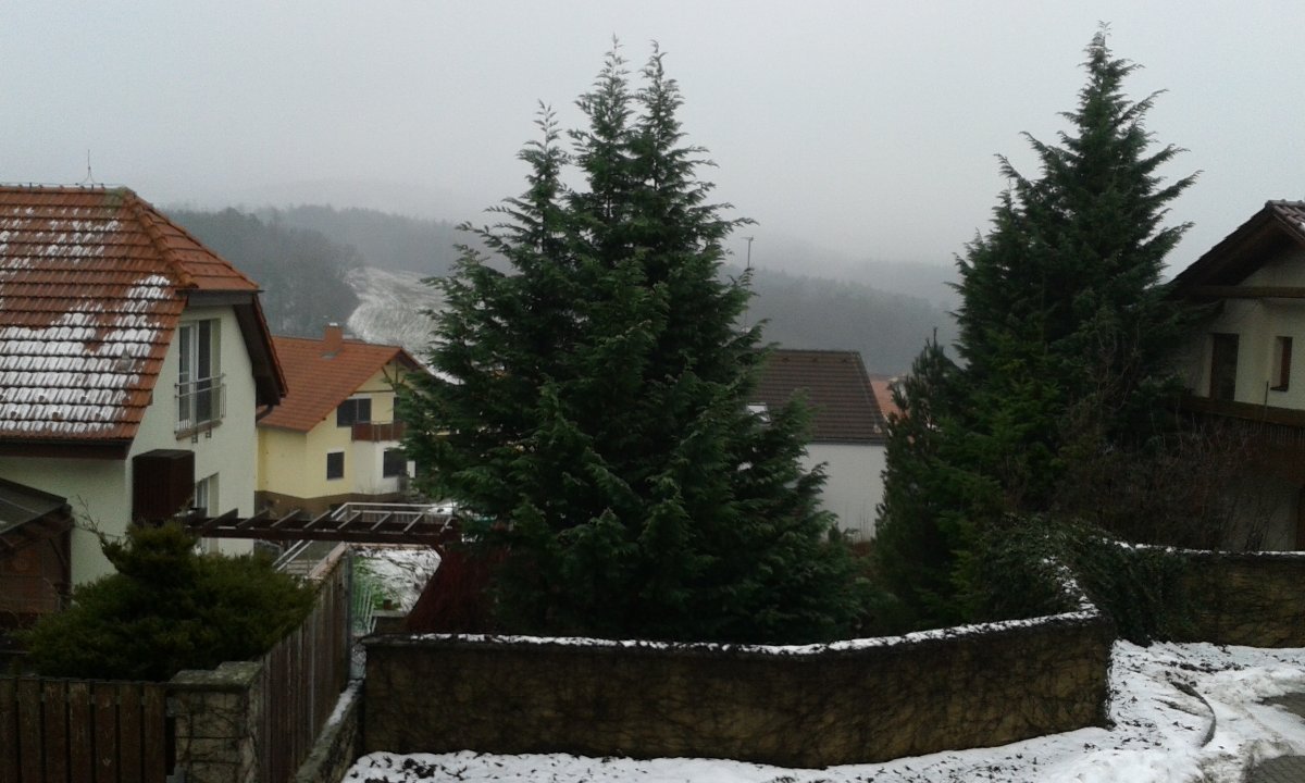 Mlha s dohledností do 150 m, tlak 998,4 hPa, SV vítr do 2 m/s.