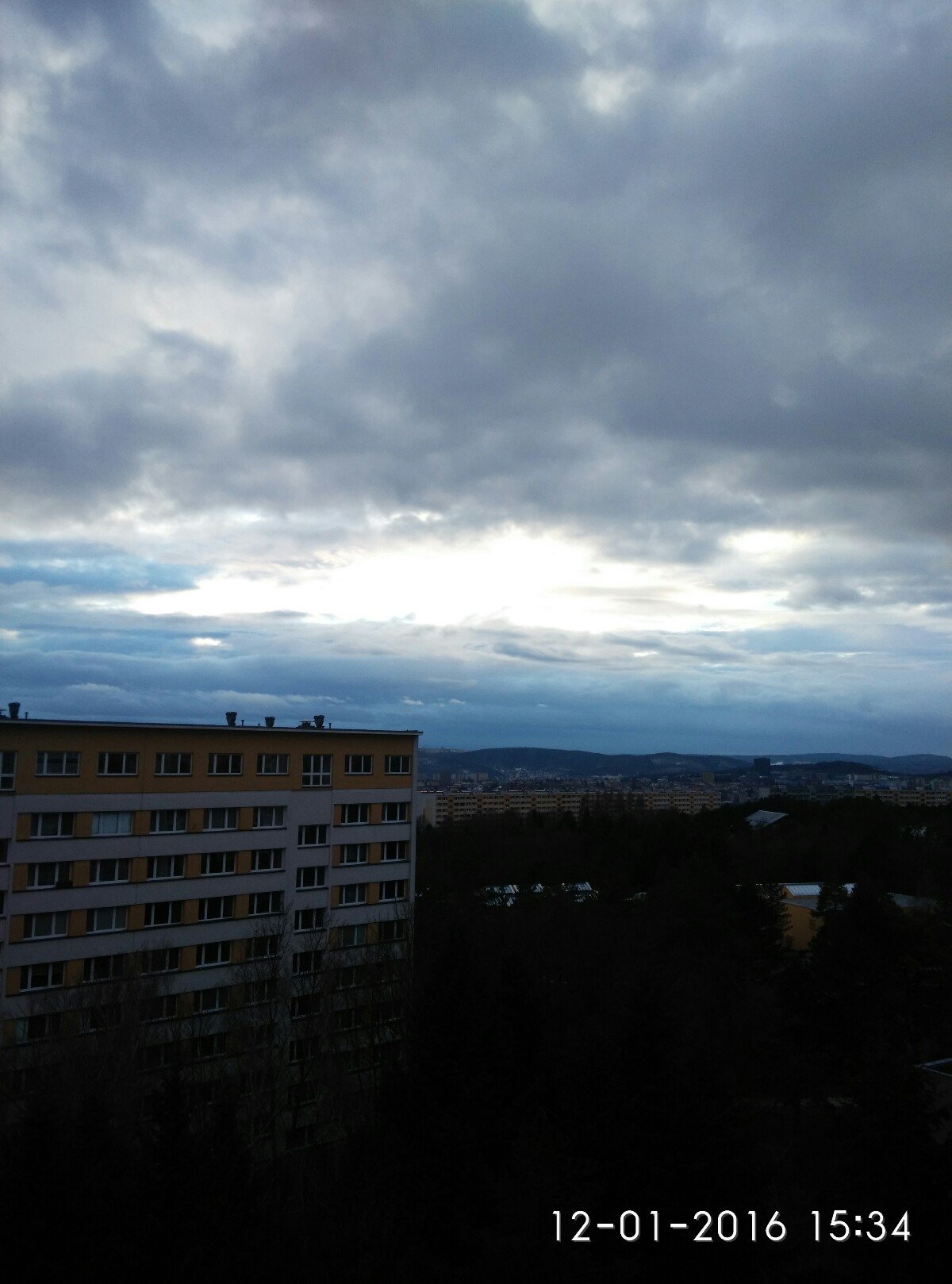 Oblačnost 86,8%, zákl.oblačnosti 921,64m.n.m., tlak 1000,0hPa, dohlednost 20km, rel.vlhkost 84,5%, abs.vlhkost 5,41g/m3, čerstvý JV vítr 144° 9,1m/s(5 Bft), poc.teplota -3,99°C, ochl.větrem -1,34°C, tepl.ros.bodu 1,73°C, tepl.mraků -4,97°C.