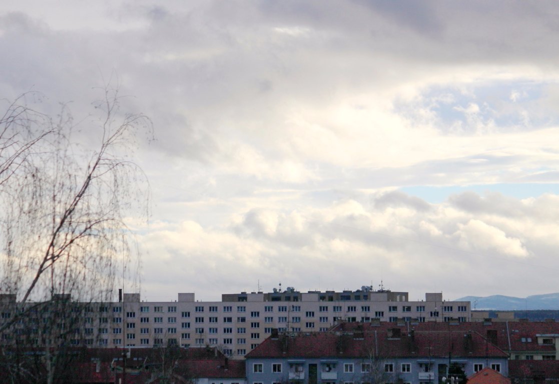 tlak 1006.9 hPa, vítr 4.8 m/s-JV, vlhkost 68%, rosný bod -0.1°C, pocitová teplota -1.5°C